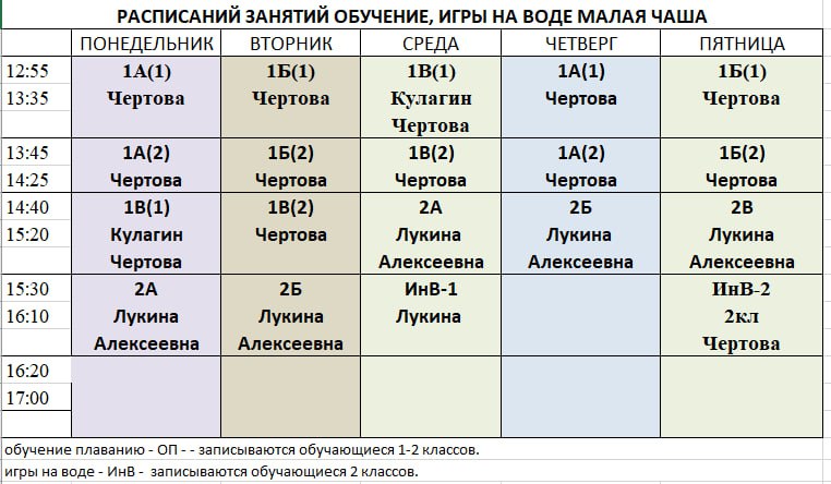 Расписание занятий в системе дополнительного образования и внеурочной деятельности: